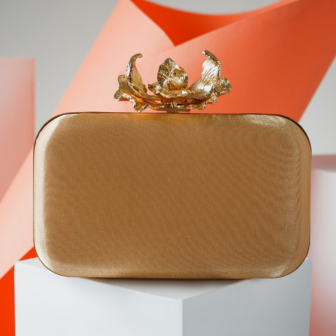 A golden ode to glamour, Rosa D’Or glows with understated opulence. The lustrous gold finish and handcrafted floral clasp capture the essence of celebration, making it the perfect statement for evenings that deserve brilliance.