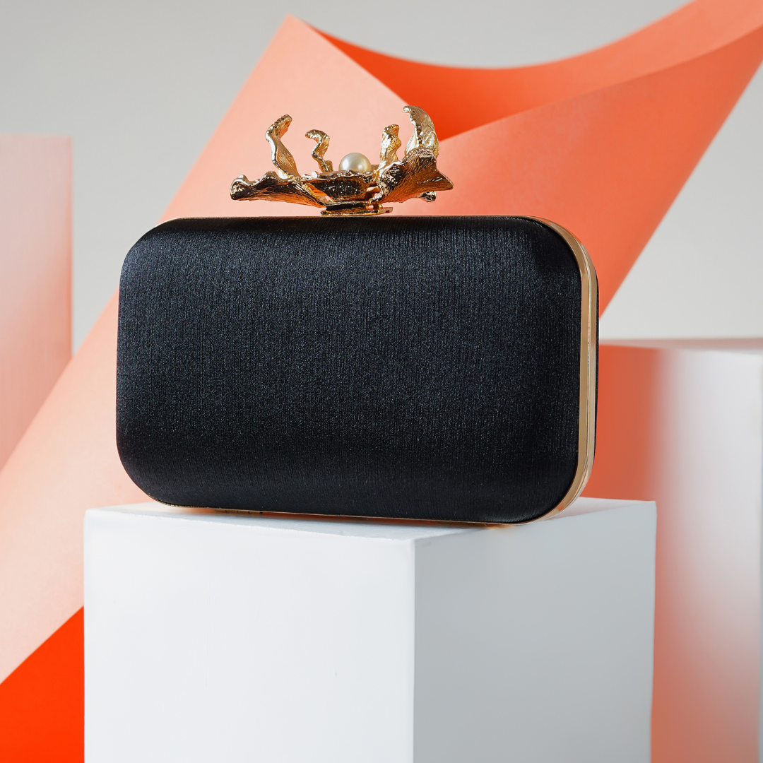 A timeless reinvention of the Hermosa classic — Rosa Noir embodies quiet power and sophistication. Draped in rich black satin and crowned with a sculpted gold floral clasp adorned with a single pearl, it’s elegance refined for the modern muse.